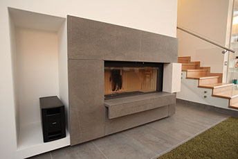 Camino in pietra grigio d'oriente - incollaggio a 45 gradi.