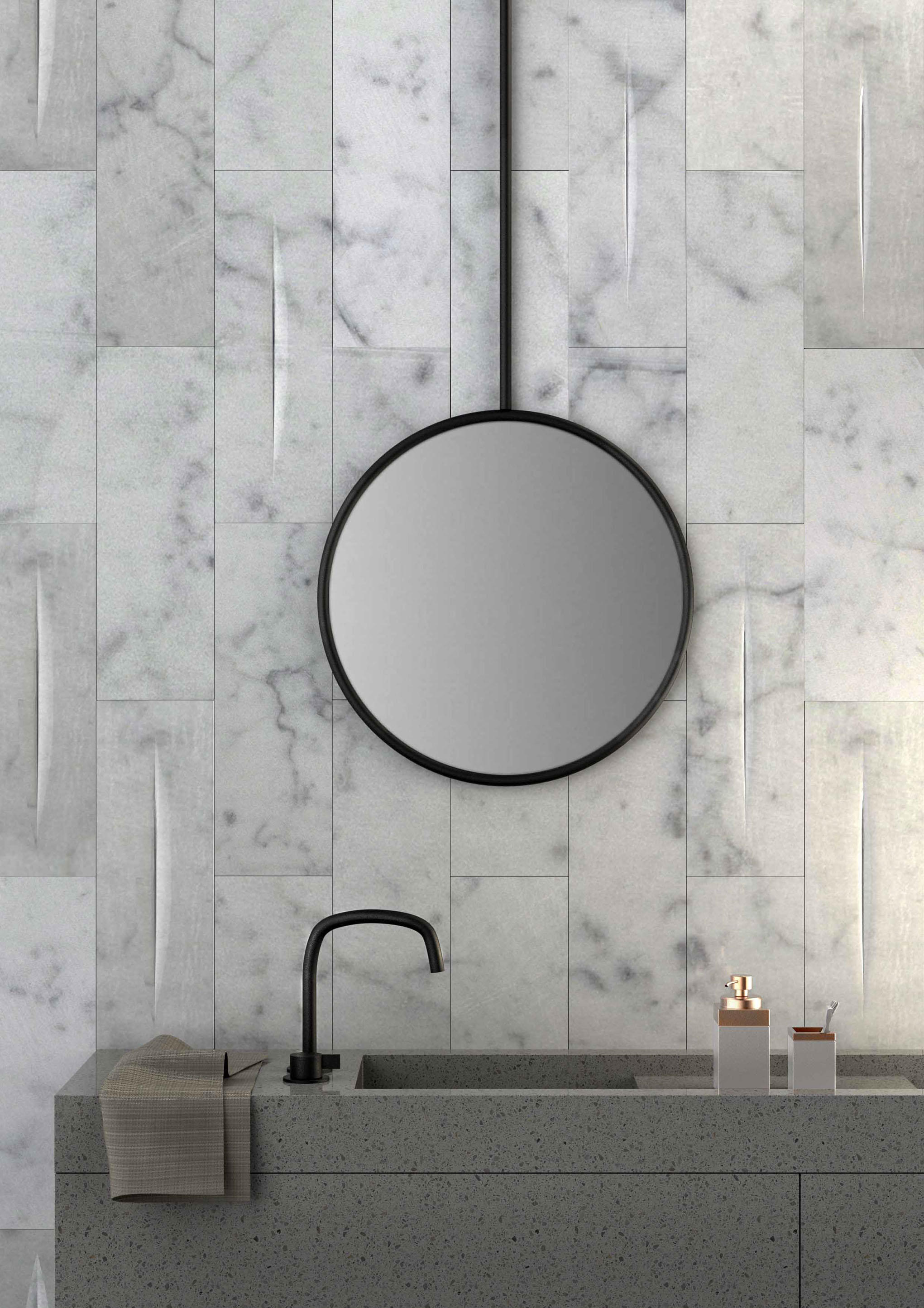 Il design di Profondo accoglie quattro grafiche diverse, da accostare con fantasia a seconda che si cerchi un pattern più fitto e regolare o composizioni più leggere. Profondo è lavorato “a spacchi o solchi” che donano morbidezza alla durezza del marmo, creando un’esperienza tattile per l’utente.